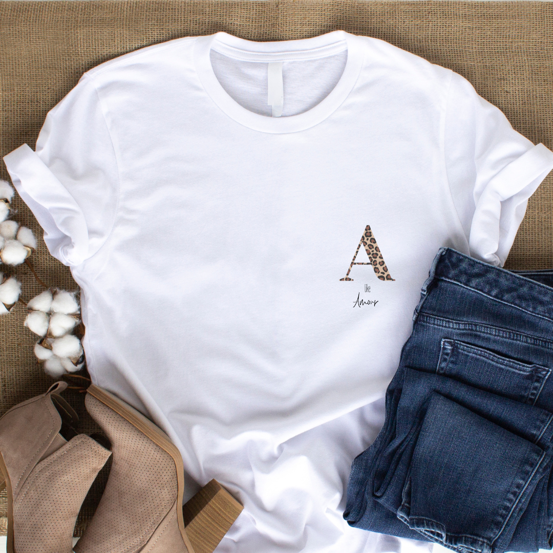 We love these leopard initials. It's a modern and timeless pattern at the same time. It's up to you to choose the initial and the text of your choice.