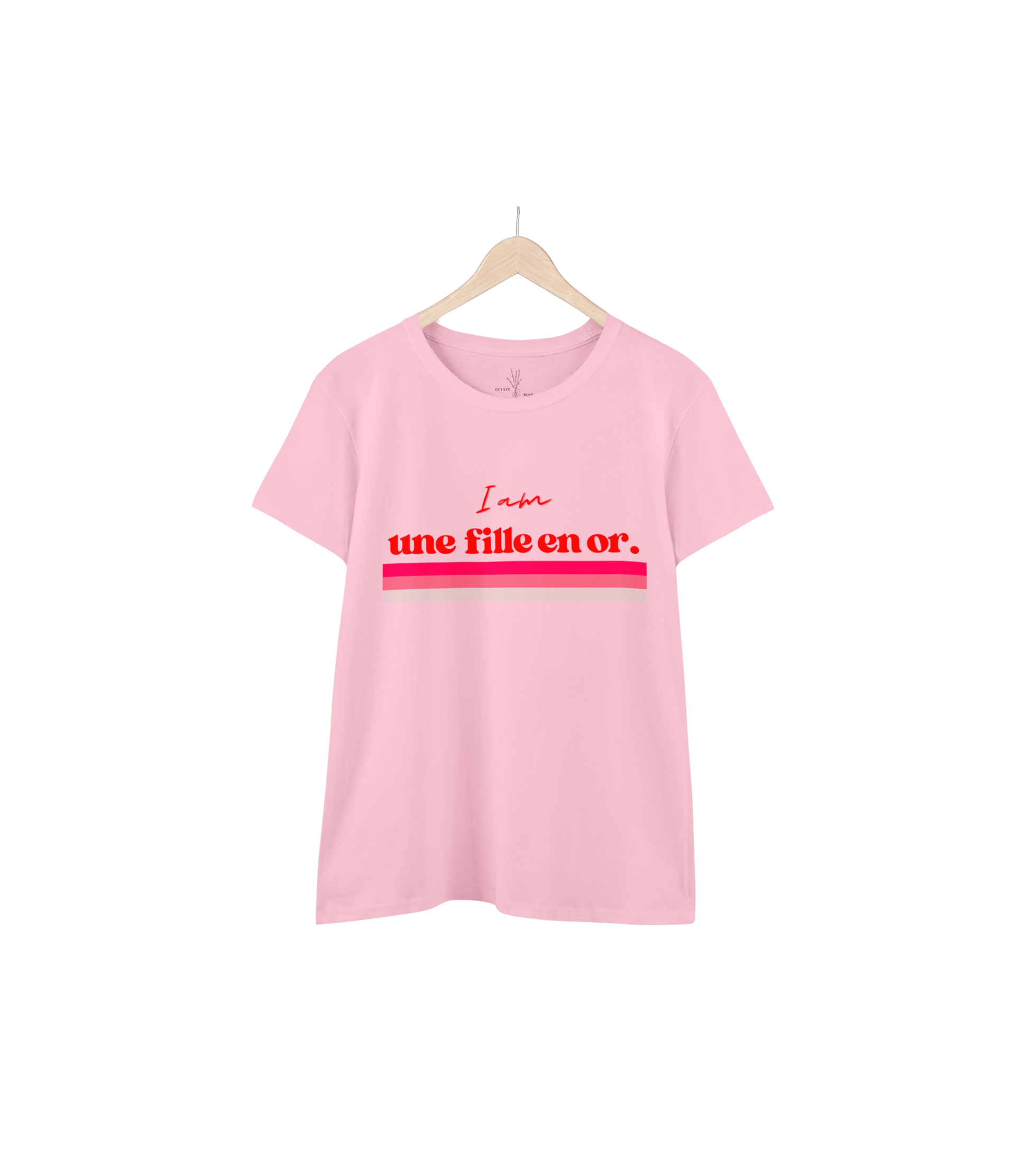 Discover our exclusive creation at Octave & Rose (OR): the "I am une fille en or" t-shirt. "Une fille en or" is a French expression that means a person is exceptional, precious, and valuable like gold. It implies that the person is admirable, talented, generous, and possesses qualities that make them special and cherished in the eyes of others. It's a way of saying that this person is truly special and precious.