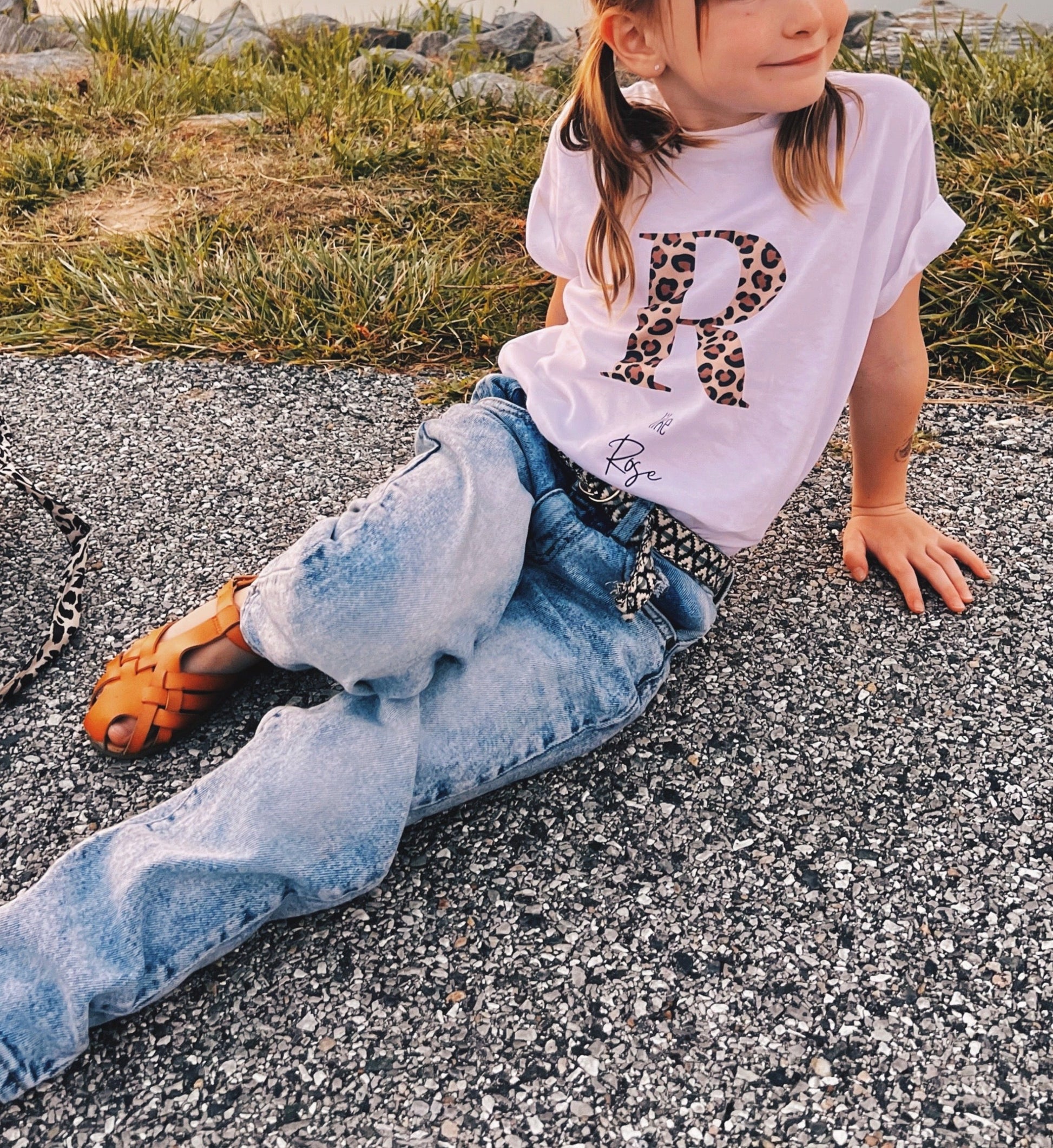 Initial Leopard Toddler Short Sleeve Tee large letter