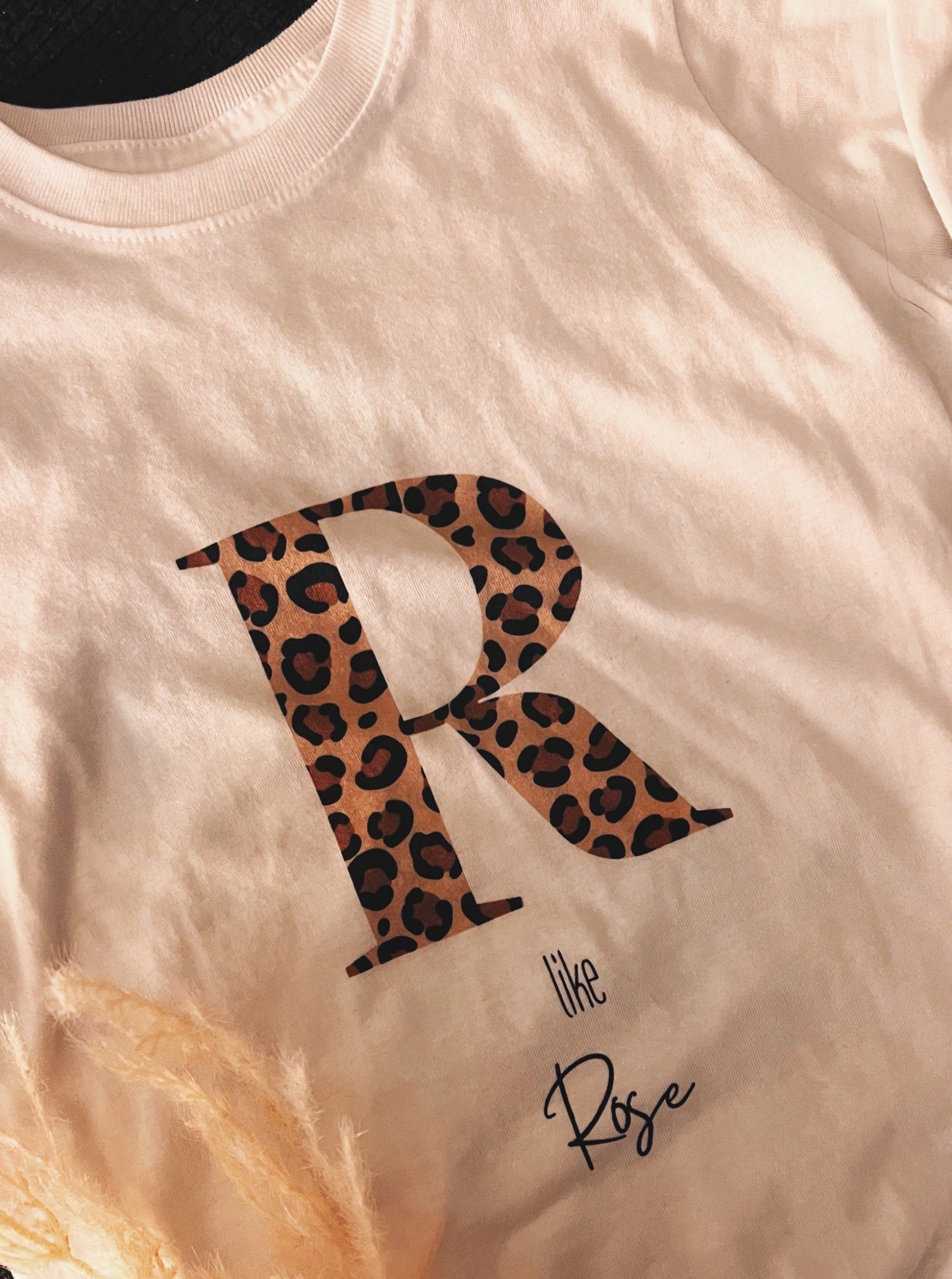 We love these leopard initials. It's a modern and timeless pattern at the same time. It's up to you to choose the initial and the text of your choice.