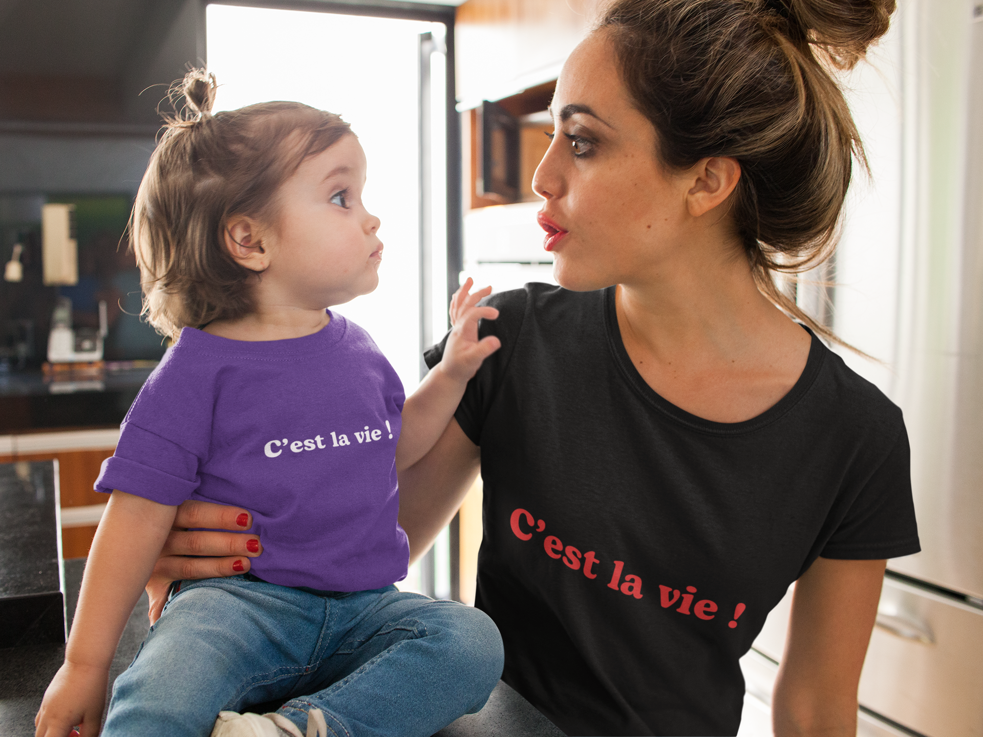 Vous pouvez le porter en duo avec le t-shirt "c'est la vie!" enfant et bébé.