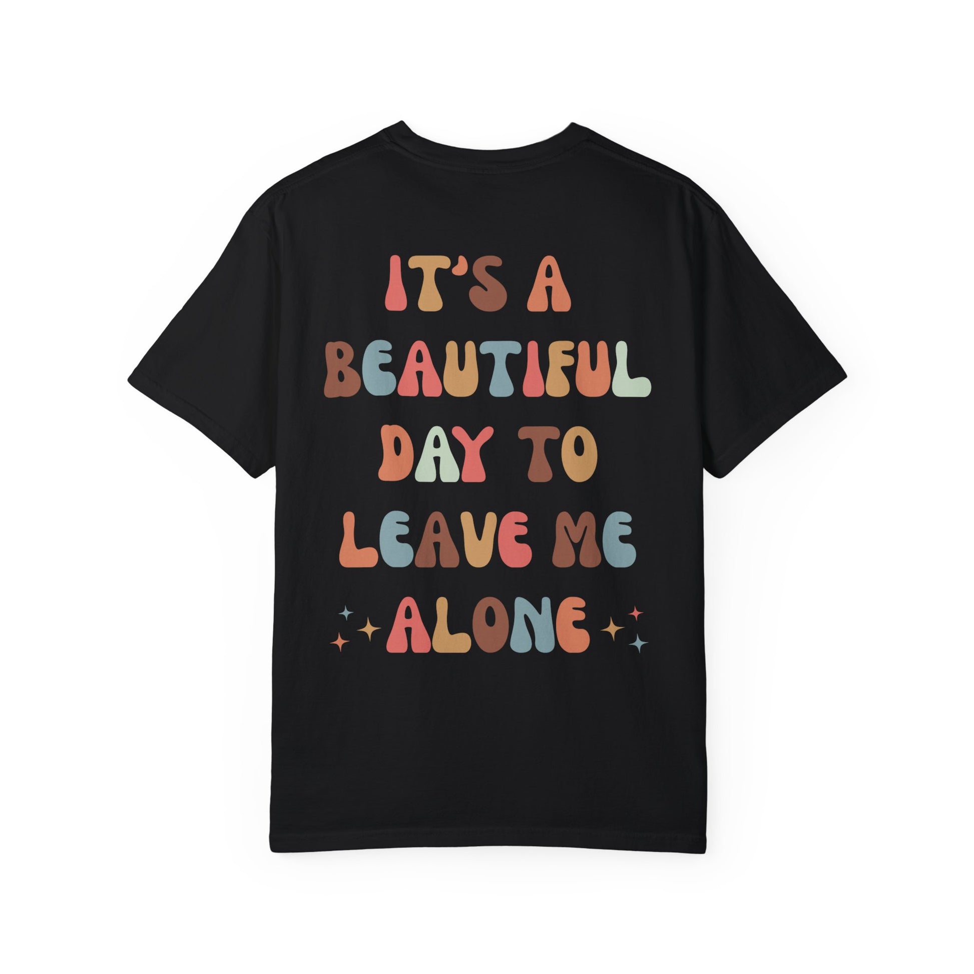 A beautiful day to leave me alone tee that exudes a laid-back and carefree vibe, perfect for introverts and those who enjoy their solitude. Ideal for individuals who appreciate comfortable and unique fashion choices, suitable for wearing on weekends, holidays, or anytime you need a little space.
